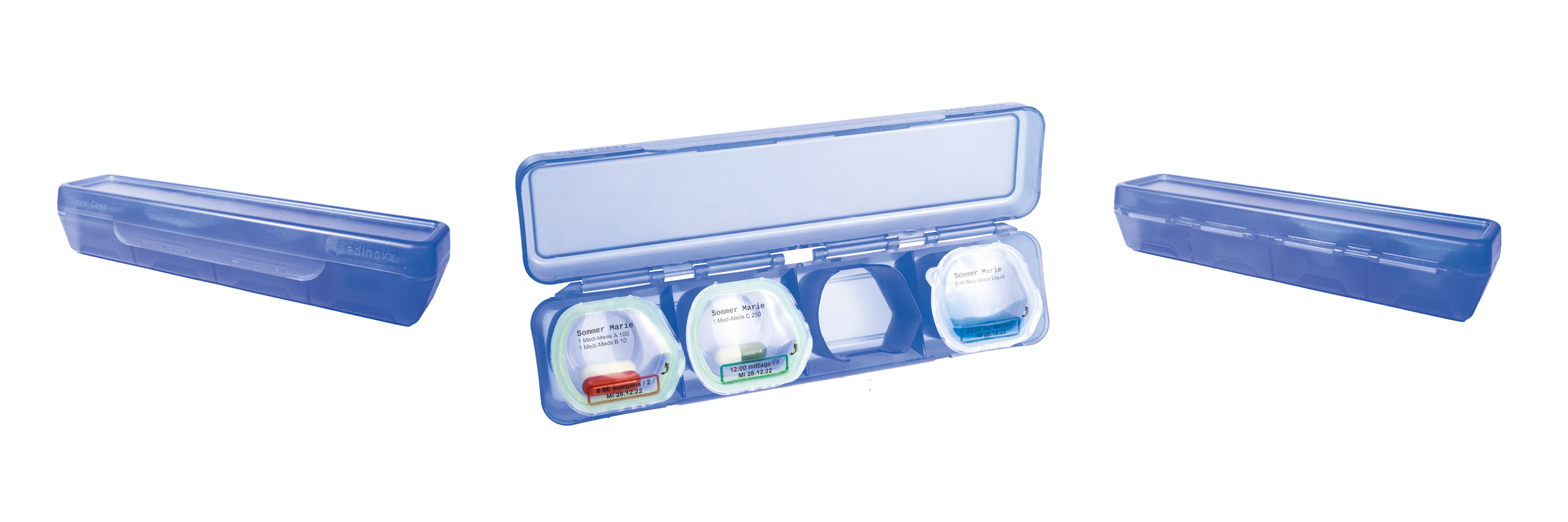 Die Einnahme von Medikamenten soll nicht die Flexibilität und Mobilität des Alltags einschränken. Mit dem Travel-Case Medi-to-Go kann die Tagesmedikation ganz einfach zu einem Tagesausflug, einem Besuch bei Verwandten oder Freunden oder einfach nur zu einem Stadtbummel mitgenommen werden. Sicher, hygienisch und lichtgeschützt eignet sie sich für die verschiedensten Herausforderungen des Tages. Sei es in der Tagespflege, Kinderpflege, für Privatpatienten oder Menschen im Außendienst.